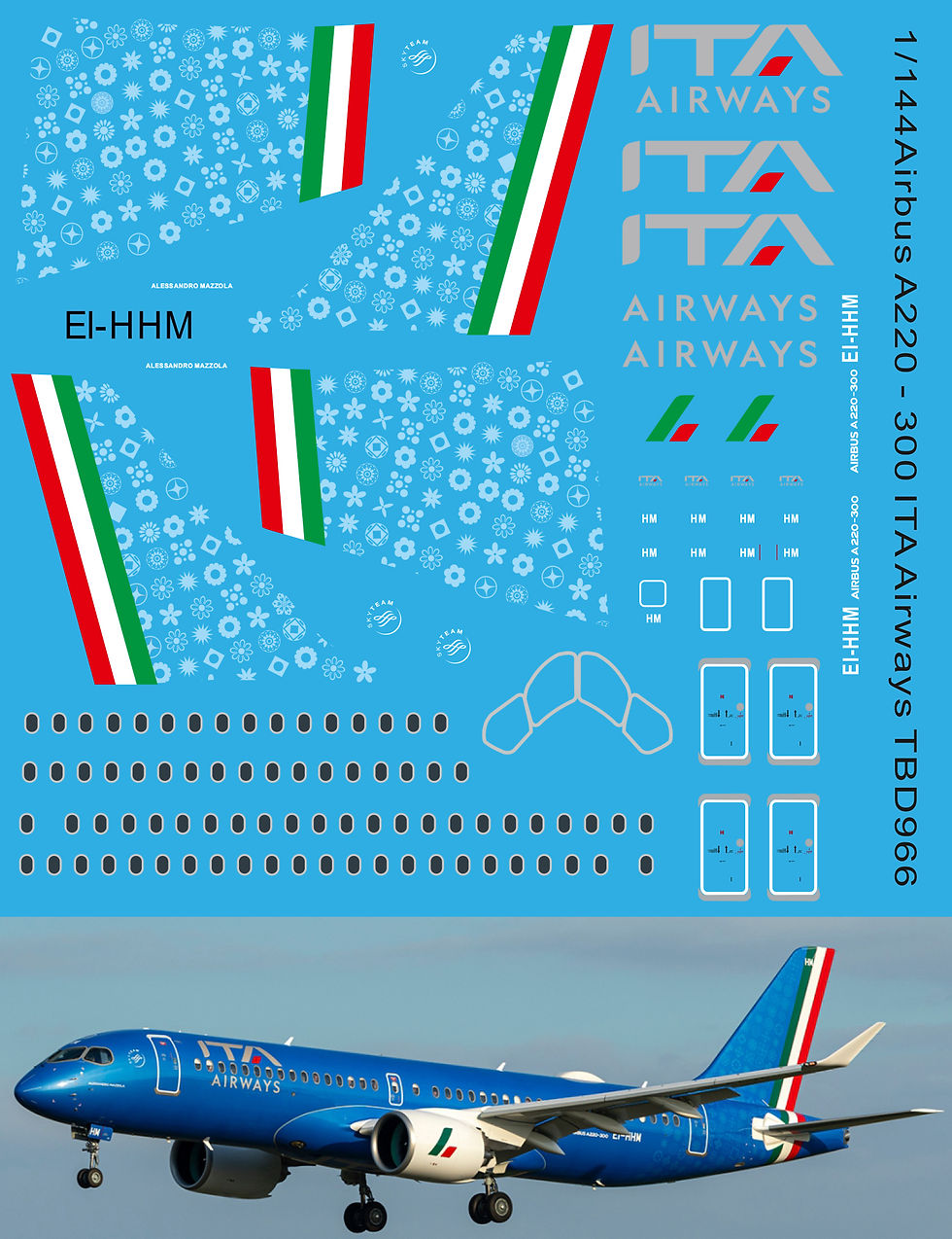 1/144 Water Decals for Airbus A220 - 300 ITA Airways TB Decal TBD966